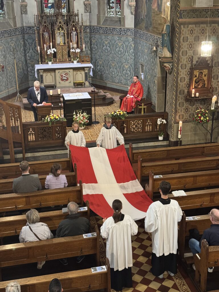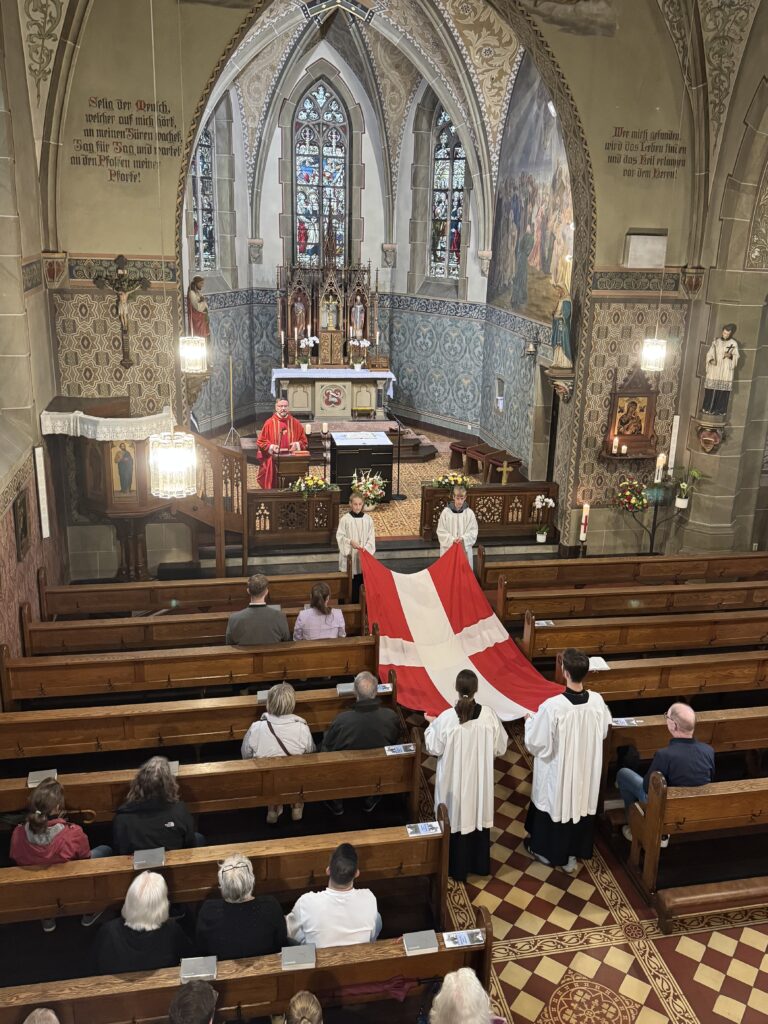 Kirchdaun-Gimmigen. Am Sonntag, 21. September 2025, wurde in einem festlichen Gottesdienst in der St. Lambertus-Kirche die neue Kirchenfahne gesegnet und offiziell eingeweiht. Damit knüpft die Pfarrgemeinde an eine lange Tradition an, denn zu besonderen Festtagen wie dem Weißen Sonntag, Fronleichnam oder zur Kirmes war die Kirche seit jeher mit einer großen Fahne geschmückt.