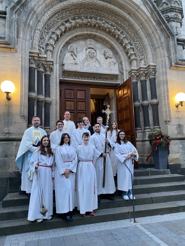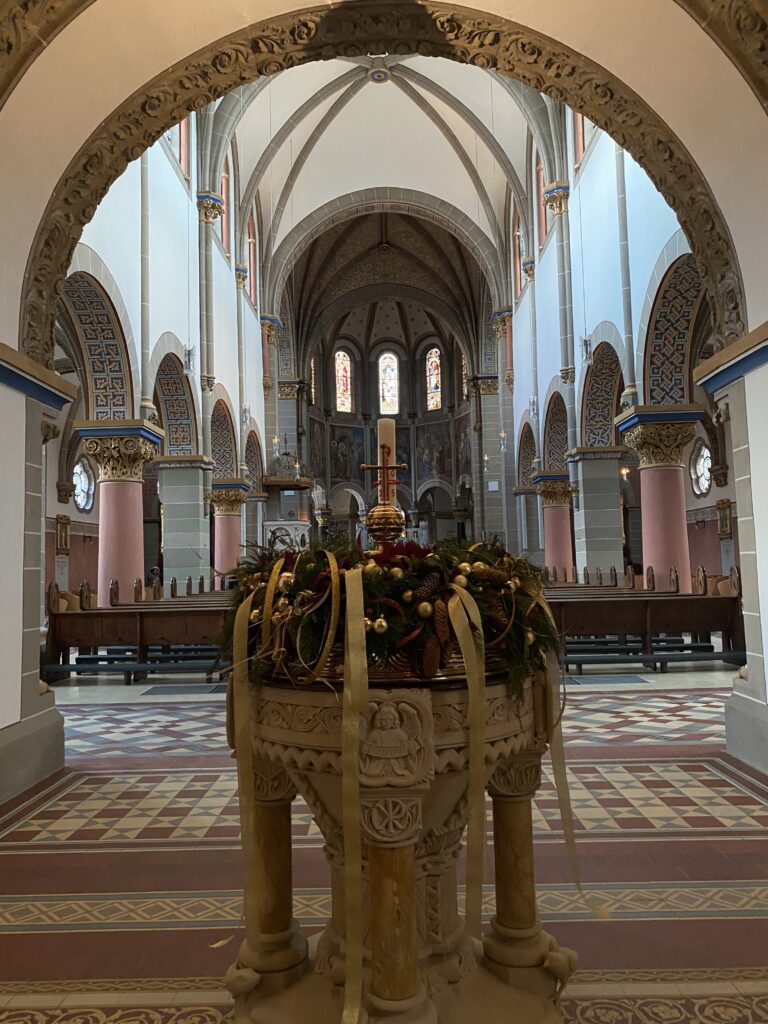 Die Kirche war bis auf den letzten Platz gefüllt. Trotz der noch laufenden Arbeiten war spürbar, wie sehr sich die Gemeinde auf die Rückkehr in ihre Kirche gefreut hat. Der Weihnachtsgottesdienst markierte damit einen wichtigen Meilenstein auf dem Weg zur vollständigen Fertigstellung der Rosenkranzkirche und gab einen ersten Eindruck davon, wie der Kirchenraum künftig wirken wird.