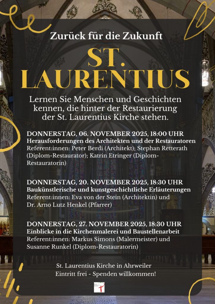 Pfarrei Bad Neuenahr-Ahrweiler Zurück für die Zukunft – Vortragsreihe in der St.-Laurentius-Kirche Ahrweiler Nach der feierlichen Wiedereröffnung im August lädt die Pfarrei Bad Neuenahr-Ahrweiler nun zu einer besonderen Vortragsreihe unter […]