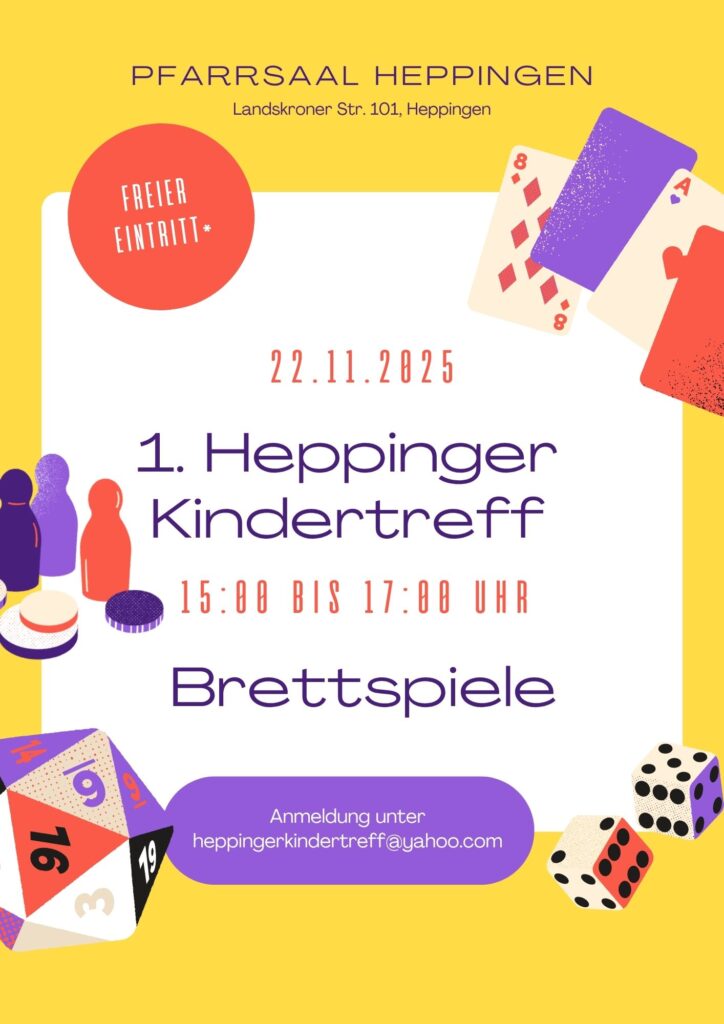 Pfarrei Bad Neuenahr-Ahrweiler Einladung zum Brettspielenachmittag in Heppingen Der Heppinger Kindertreff lädt alle Kinder und Familien herzlich zu einem fröhlichen Brettspielenachmittag ein! Am Samstag, 22. November 2025, heißt es von […]